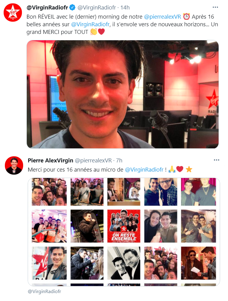 Surprise en ce dimanche, avec l'annonce du départ de Pierre-Alex, après 16 ans de service au sein d'Europe2 puis de Virgin Radio.
